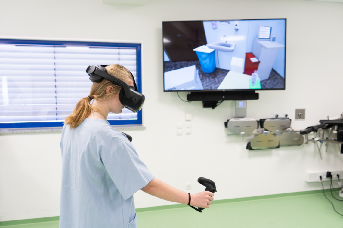 Dank realitätsnaher Simulatoren spielen die Teilnehmenden verschiedene Vorgänge und Prozesse in der Patientenversorgung durch und lernen dabei praxisorientiert. Die Modelle ermöglichen ein, der Realität entsprechendes Handeln. Mit verschiedenen Funktionen, wie der Simulation von Atmung und Vitalparametern werden Alltagssituationen nachgestellt. Feinheiten wie das Augenzwinkern oder Herzgeräusche gestalten die Simulation besonders realitätsgetreu. Der berufliche Alltag wird dadurch nicht nur nachempfunden sondern wahrlich erlebt. Neben Videokameras zur Aufnahme und anschließendem Debriefing der Skills Trainings, werden reale Szenarien mit einer 360-Kamera virtuell dargestellt. VR-Brillen ermöglichen die Darstellung von z. B. anatomischen Strukturen und die Begehung von virtuellen Räumen.