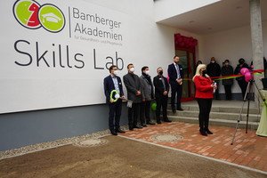 Mit dem neuen, innovativen Lernort Skills Lab bilden die Bamberger Akademien alle Versorgungssettings des Gesundheitswesens von ambulant bis akutstationär auf insgesamt 280m² Trainingsfläche ab. Der dritte Lernort für alle Gesundheitsberufe schafft eine Verbindung zwischen Theorie und Praxis. Modernste Simulatoren und eine Ausstattung wie im Krankenhaus, Pflegeheim oder Zuhause machen die Trainings möglichst realitätsnah. Teilnehmende haben die Chance „Alltagssituationen immer wieder zu üben und auszuprobieren und das in einem ethisch-moralischen Raum“ so Akademieleitung Prof. Dr. phil. Matthias Drossel.